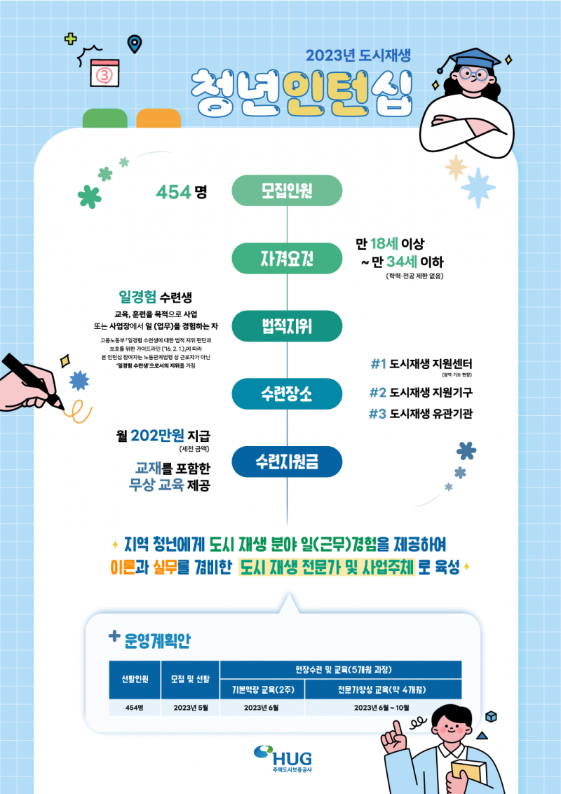 지역청년에게 도시재생 분야 근무경험을 제공하는 2023 국토부 도시재생 청년인턴십 제도를 운영할 예정입니다,