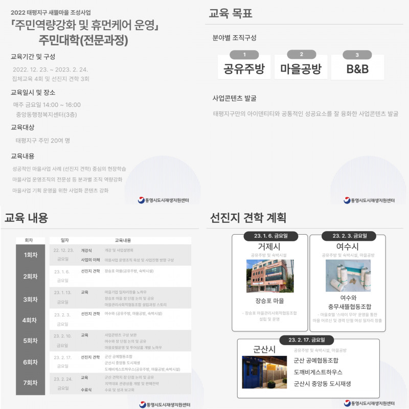 통영시도시재생센터와 태평지구가 함께하는 태평지구 주민대학(전문과정)에 대해서 소개합니다.!!