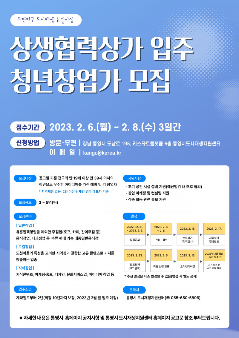 4. 관련문의: 통영시 도시재생지원센터 (☎ 650-5896)
