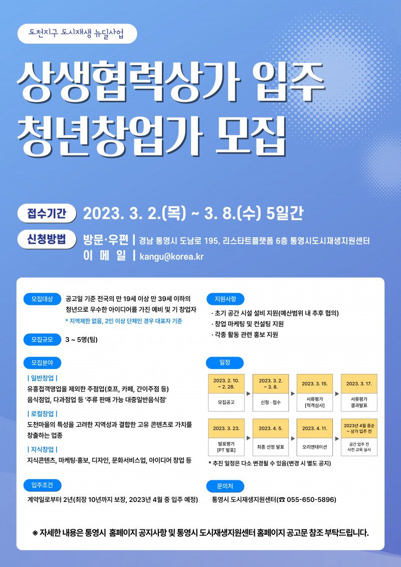 4. 접 수 처: 통영시 도시재생지원센터 (☎ 650-5896)