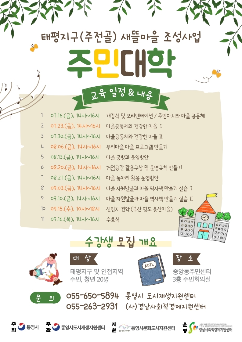[교육] 태평지구(주전골) 새뜰마을사업 주민대학 교육생 모집