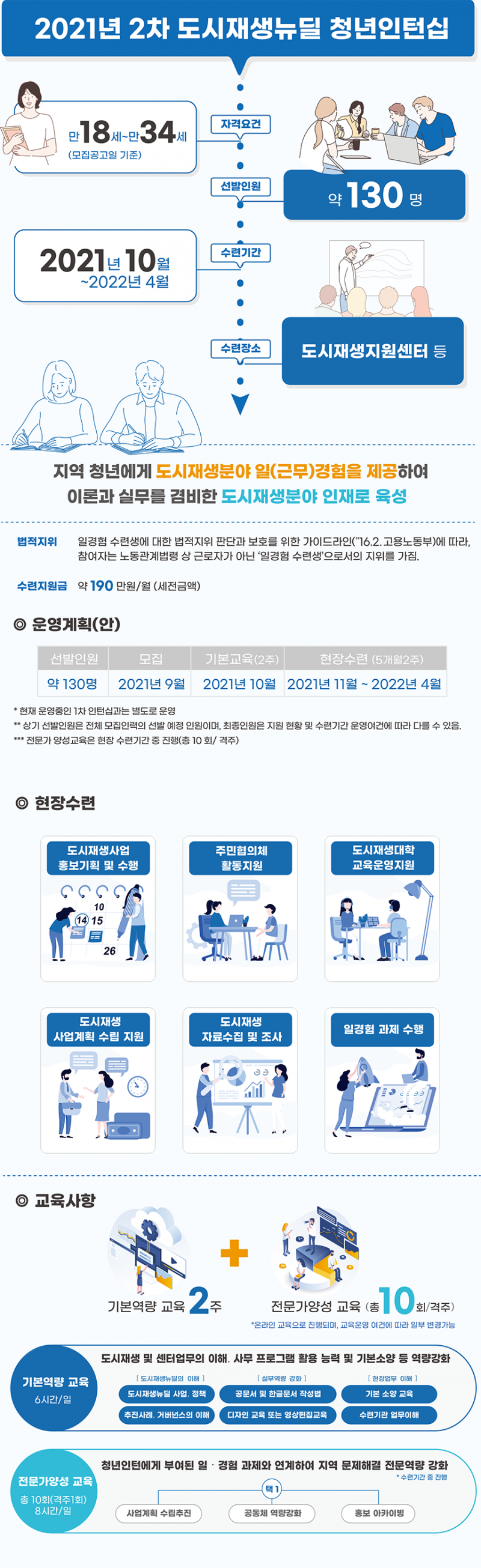 「2021년도 2차 도시재생뉴딜 청년인턴십(일경험 수련생) 선발공고」