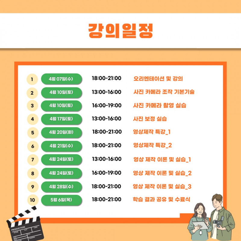 - 교육내용: 미디어(사진 영상) 콘텐츠 제작을 위한 전문과정