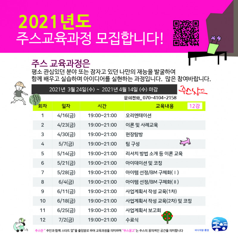 ❍ 기 간 : 2021. 4. 16.(금) ~ 7. 2.(금) / 매주 금요일 19:00~21:00 (총 12회차)
