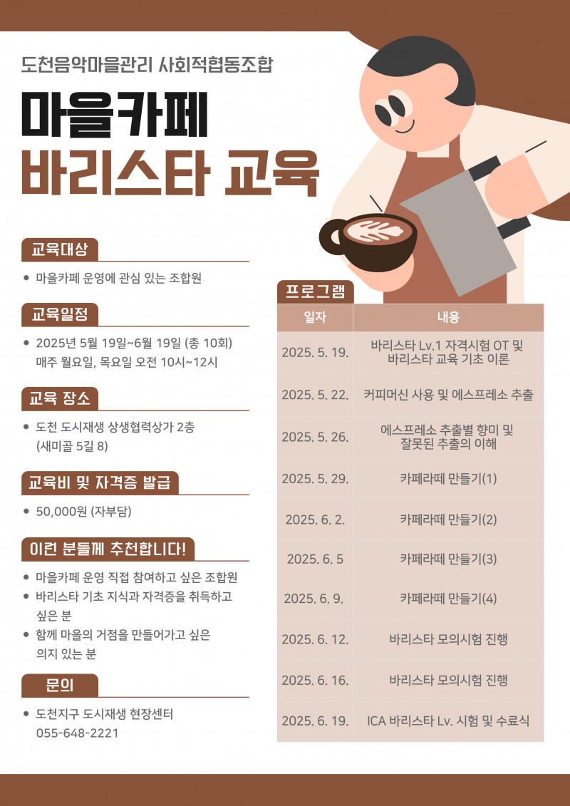 - 교육 대상: 마을카페 운영에 관심 있는 조합원