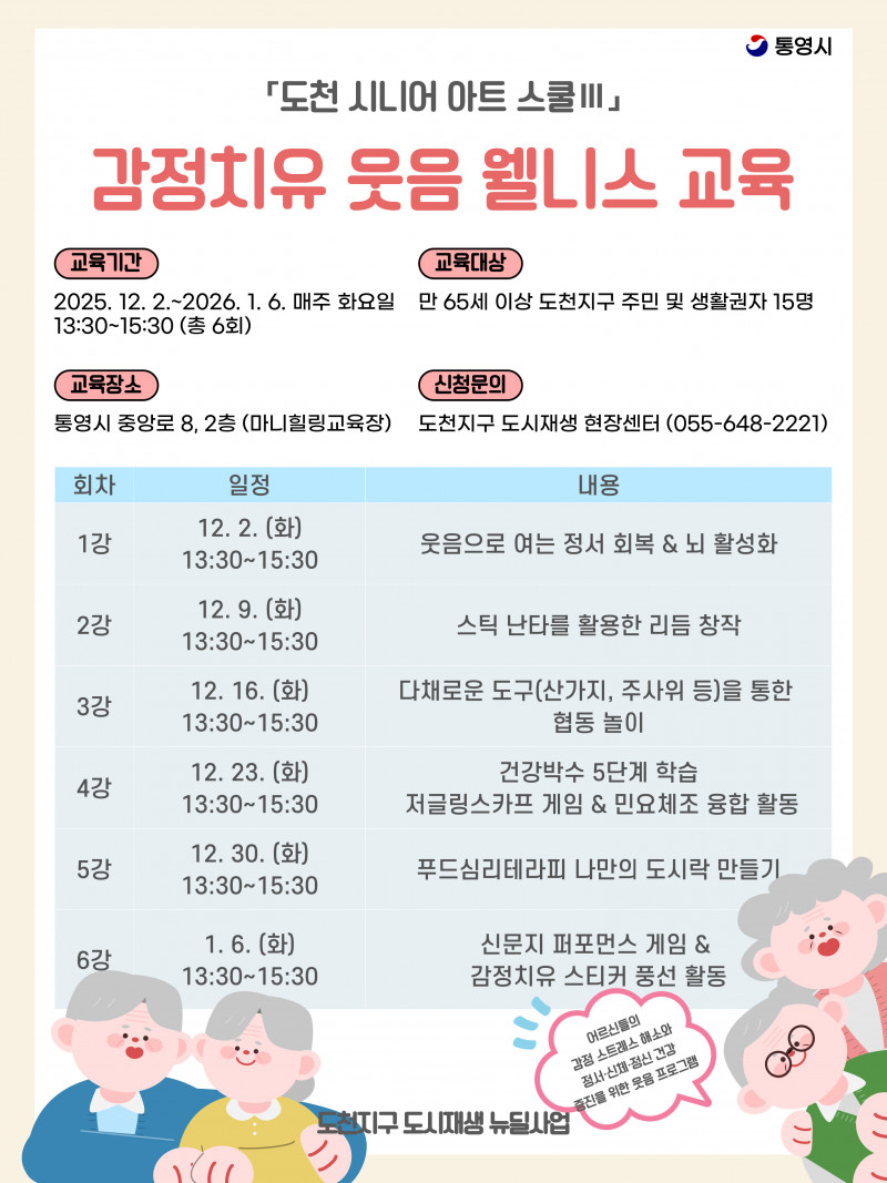 - 대상: 도천지구 주민 및 생활권자 만 65세 이상 15명